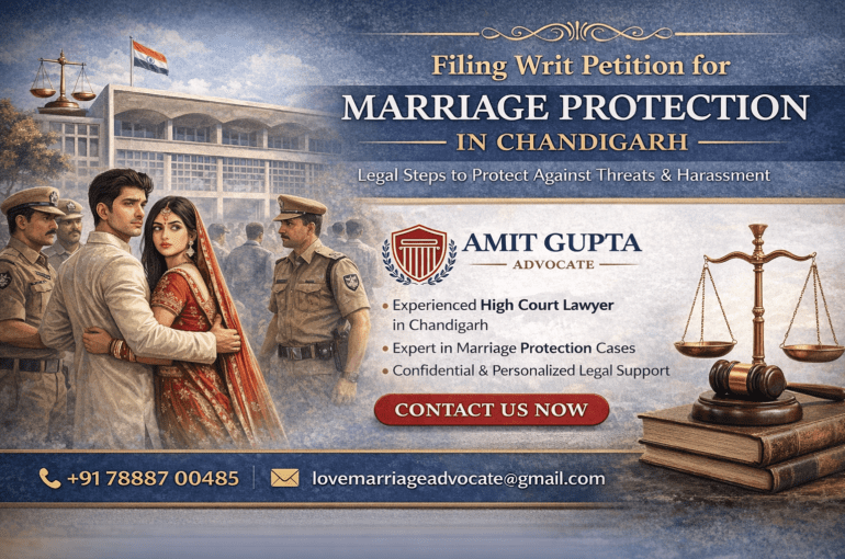Filing Writ Petition for Marriage Protection in Chandigarh – A Writ Petition for a marriage protection is one of the important legal steps that couples take to counter any threats, harassment, or violence due to their relationship or marriage. It is said that love has no boundaries, and as the growth of modern India, the number of intercaste, inter-religious and many more marriages that are not accepted by society are taking place; such marriages often face opposition from families or society, causing a serious safety risk for the couple. In cities like Chandigarh, the high court provides a legal platform through which a couple facing such a situation can seek immediate protection.